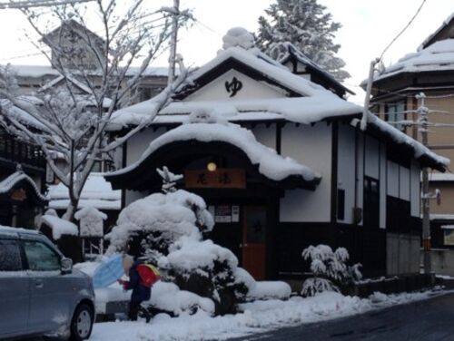 温泉街の中心にある共同浴場の尼湯。 今回は宿の温泉にだけ浸かりましたので、こちらは次回。 尼湯の周りには、飲料用の温泉出口。 井戸を掘っても水ではなく温泉が出てしまうので、沢から水をひっぱってきたらしい。 過ぎたるは及ばざるが如しやね。 車を宿…
